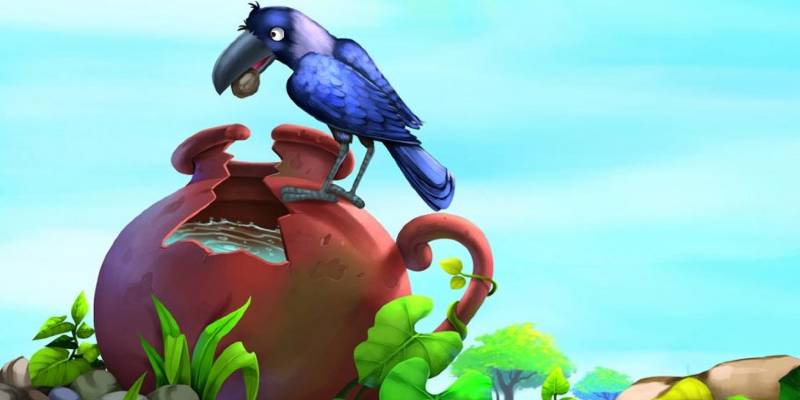 রোদ্র তপ্ত গ্রীষ্মের দিন ছিল। তৃষ্ণার্ত একটি কাক পানির খোঁজে এদিকে সেদিকে উড়ে বেড়াচ্ছিল। প্রচন্ড রৌদ্রতাপে পানি খুঁজতে খুঁজতে সে পরিশ্রান্ত হয়ে পড়েছিল। কিন্তু সে কোথাও একটু পানি খুঁজে পেল না। খাবার জন্য পানি না পেয়ে কাকটি জীবনের আশা ছেড়ে দিয়েছিলো।