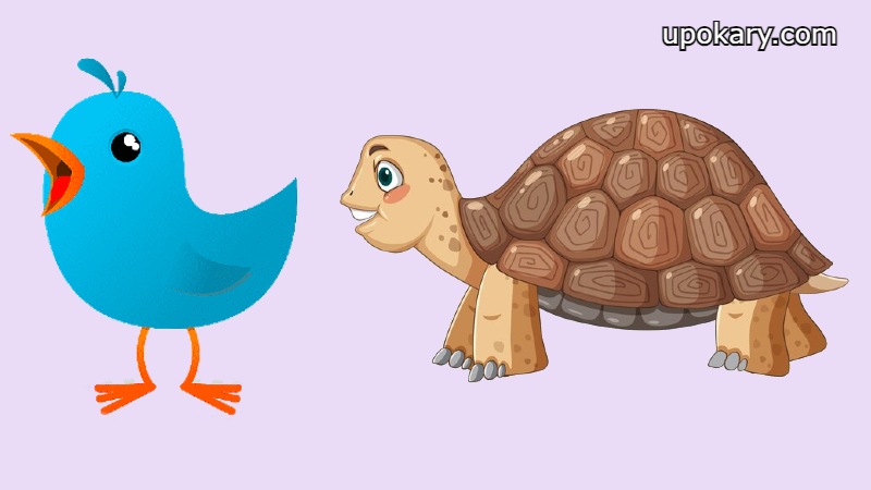 কচ্ছপ এবং টুনটুনি পাখি।