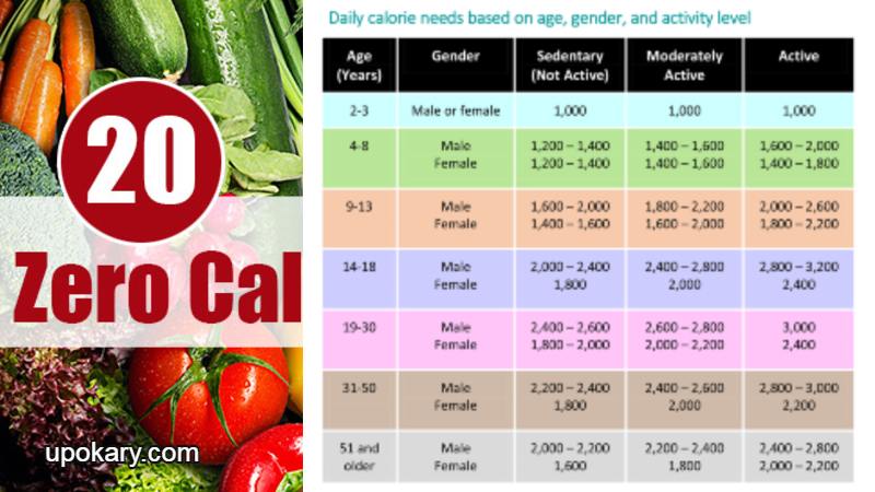 ১৪ থেকে ৩০ বছর বয়সের সক্রিয় পুরুষদের ২,৮০০ থেকে ৩,২০০ ক্যালোরি দরকার হয় তবে একই বয়সের নিষ্ক্রিয় বা অলস পুরুষদের ২,০০০ থেকে ২,৬০০ ক্যালোরি প্রয়োজন।