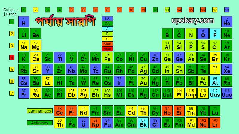 পর্যায় সারণির ১১৮ টি মৌলের নাম ও কাজ সমূহ।