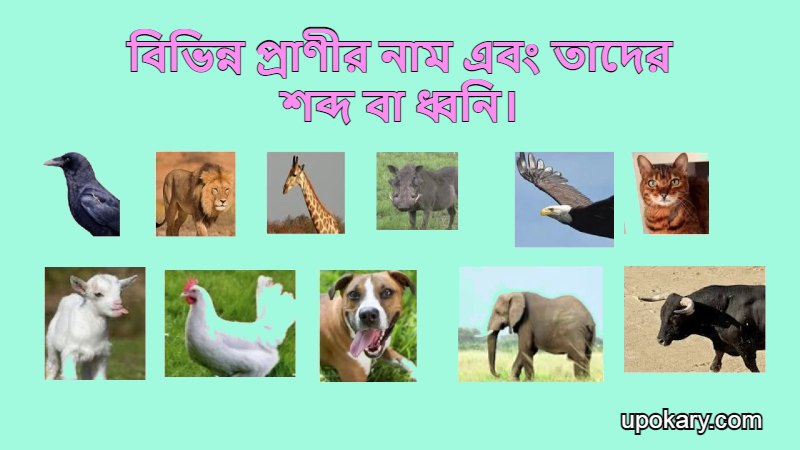 বিভিন্ন প্রাণীর নাম এবং তাদের শব্দ বা ধ্বনি।