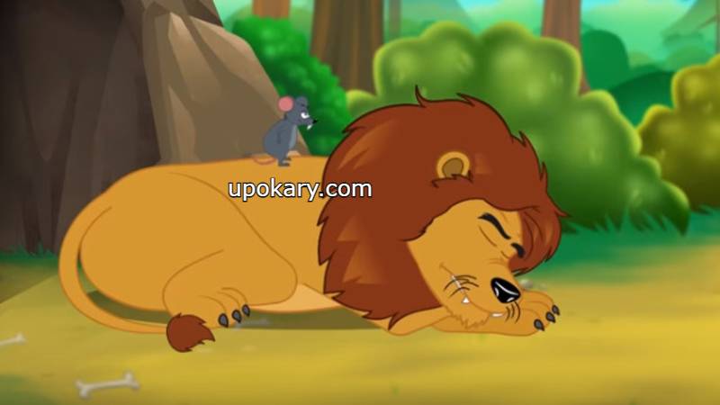 একদিন এক সিংহ তার গুহায় ঘুমিয়ে ছিল। হঠাৎ একটি ছোট ইঁদুর ছুটাছুটি করতে করতে সিংহের নাকের ভিতর ঢুকে পড়ল। সাথে সাথে সিংহের ঘুম ভেঙ্গে গেল।